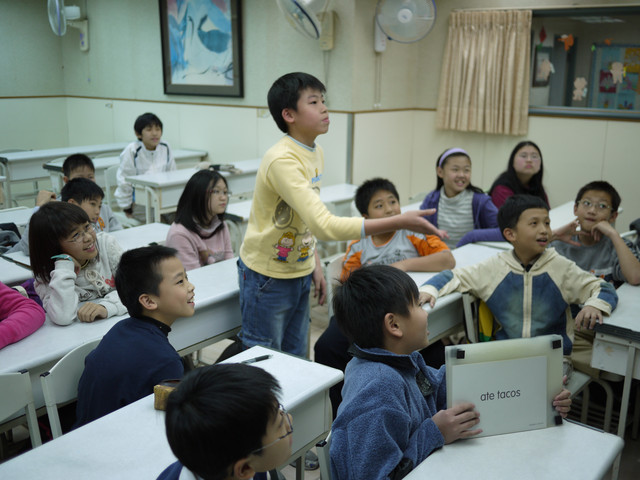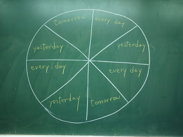 5. Ask your team members to repeat the sentence and your team will win 1 point. 規則很簡單,希望大家能看得懂。若圖卡是eat tacos (吃墨西哥餅),而丟到不同的時間副詞時,造的句子也會不同,如下:He eats tacos every day. He ate tacos yesterday. He will eat tacos tomorrow. / He is going to eat tacos tomorrow.建議老師們,可以鼓勵孩子們盡量使用he / she / Sam / Tina...(第三人稱單數)開頭來造句。因為要多練習在「現在簡單式」的動詞加s用法,練成自然,才不容易錯。適用班級:已教完三種時態的兒美班。遊戲目標:使學生能順利轉換對他們而言較為抽象的「時態」,又能在競賽氣氛中,主動樂意說英文。如有更好的建議,歡迎留言交流喔。如果您喜歡這個教學法,歡迎按個「推」。謝謝。