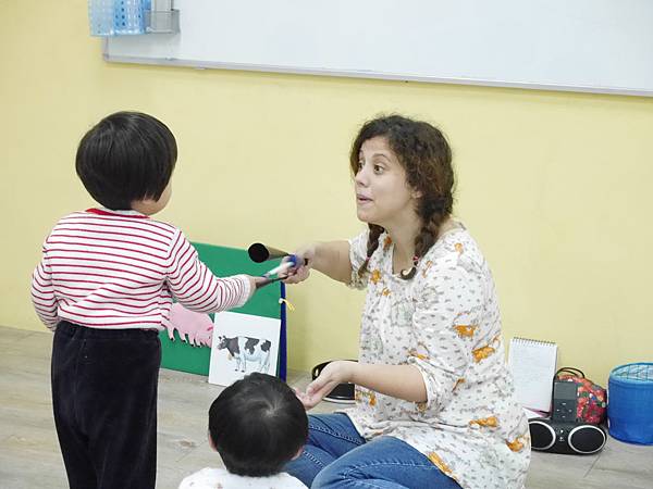 當然媽媽們也很重要!Kindermusik 的精神,是希望引導親子一起在音樂裡面互動、學習喔,所以媽媽們也要放鬆,跟孩子一起遊戲、玩、唱、動一動,也請用眼神和微笑來鼓勵孩子喔。