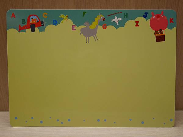 兩面為不同的顏色(黃綠色和海洋藍),皆可用白板筆書寫,以衛生紙或乾布擦拭重複使用。