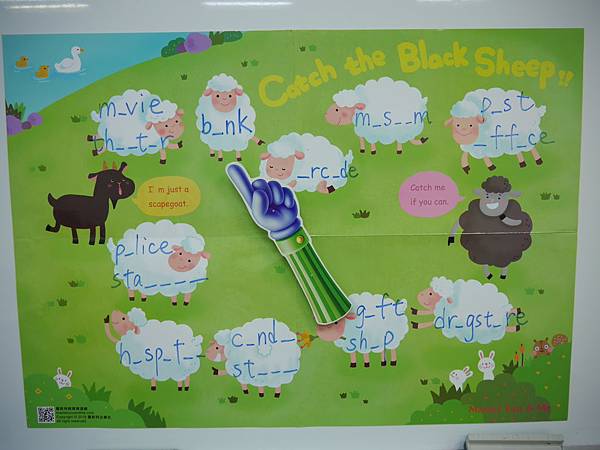 至於「Catch the Black Sheep 遊戲海報」,它真的很萬用,白羊的身上就是讓我們寫字的,教單字最優了。